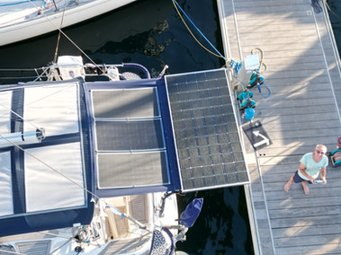 Our 3 additional solar panels are now installed, thanks to Ingrid’s hard work of sowing and designing our bimini extension. It looks great and I am hopeful for the added power this will give, especially as the Pod 600 is not contributing sufficiently.