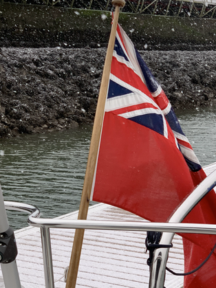 The flurries came thick and fast, covering the boat and pontoon with a white layer of snow. We did ask the Capitainerie to put some salt on the moving pontoon as the low tide makes a steep and potentially slippery walk. They kindly obliged and our day was without any broken bones !